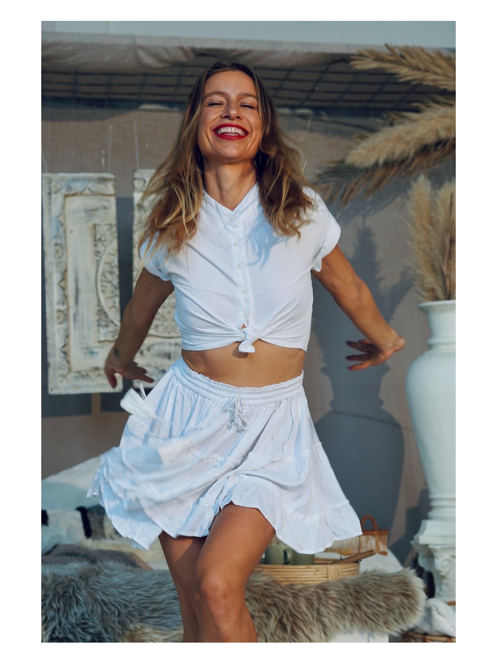 - Na kouzelném Bali, šije pro vás miloučká babička, paní Ayu. Vybrala jsem si jí, protože mě nadchla její laskavost a láska k práci. Pod jejími prsty vznikají ty nejkrásnější kousky naší kolekce a já vidím, že dává lásku do každého stehu.