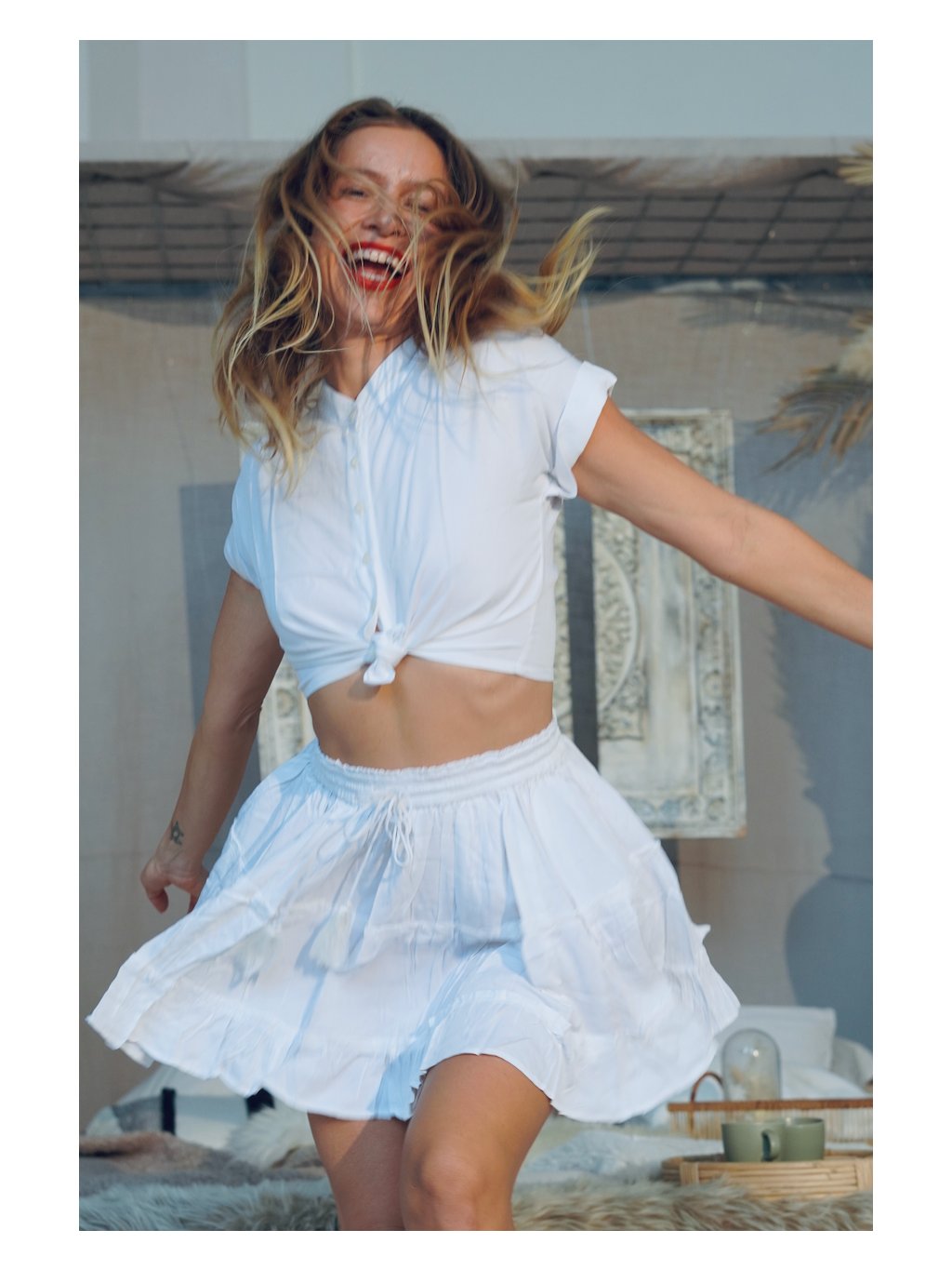 Oblečená, neoblečená... košilka, nekošilka. Jdeme zpátky do školy. Ale ne do lavic. Na louku a do lesa. Chechtat se a vědět, že svět se otočí okolo nás, protože ho vytváříme ve své mysli.