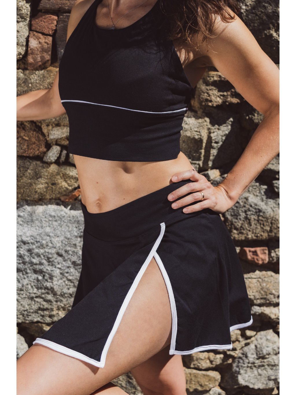 Ah ten bambus a ten rozparek! Viděla jsi, ty kraťásky všité pod sukní, jak vytváří ten wow efekt samotného rozparku? Bambus je materiál, který v zimě hřeje a v létě je prodyšný. Ano, je to tak. Je to náš malý zázrak. Tato bambusová sukénka je taaaak jemná na dotek a je šetrná k pokožce — přesně to, co od oblečení na jógu či sport očekáváš.