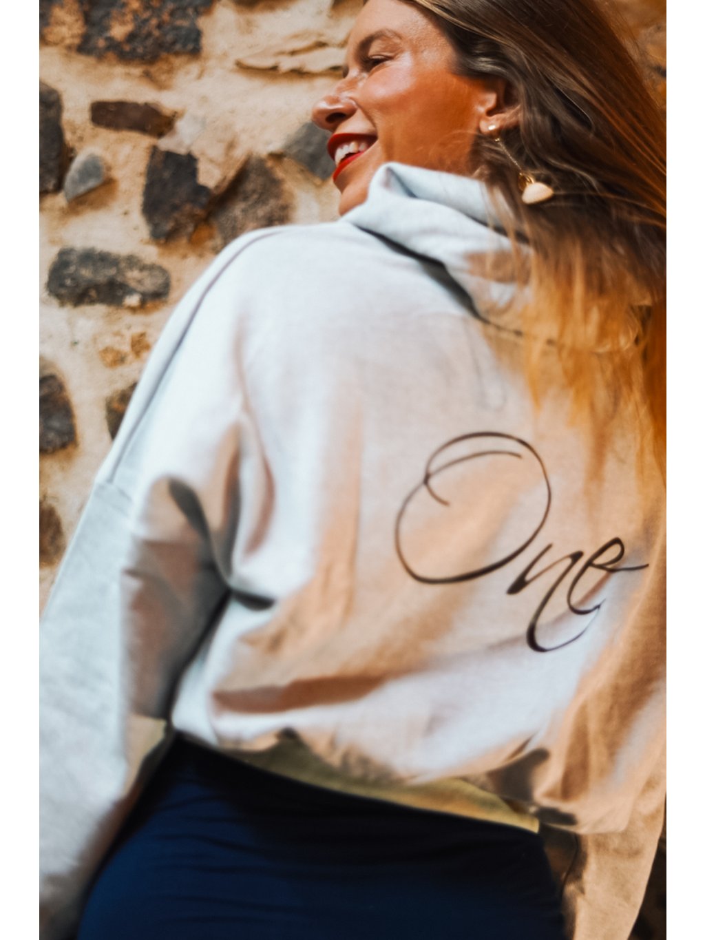 Bavlněná mikina hrdličkově šedá s potiskem ONE