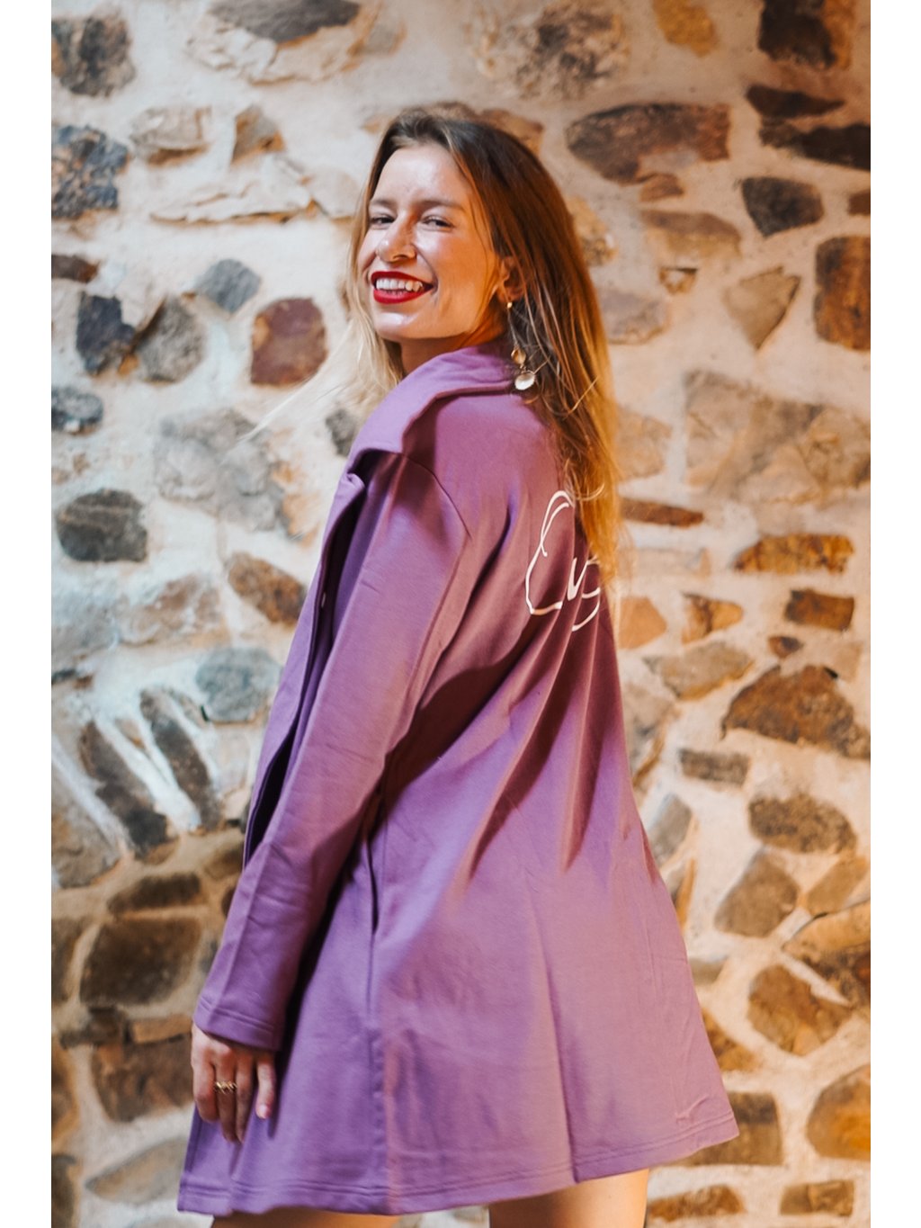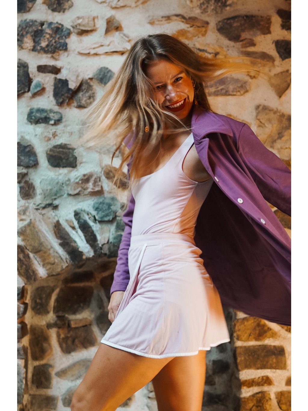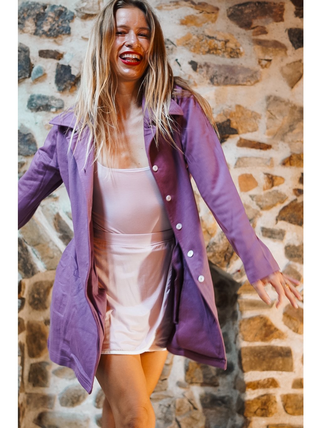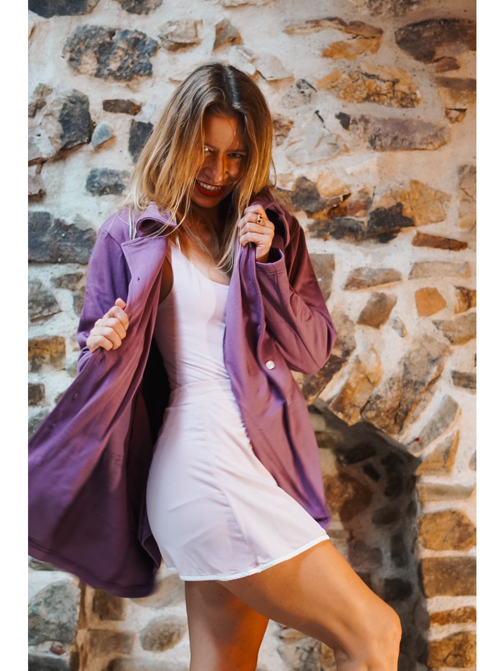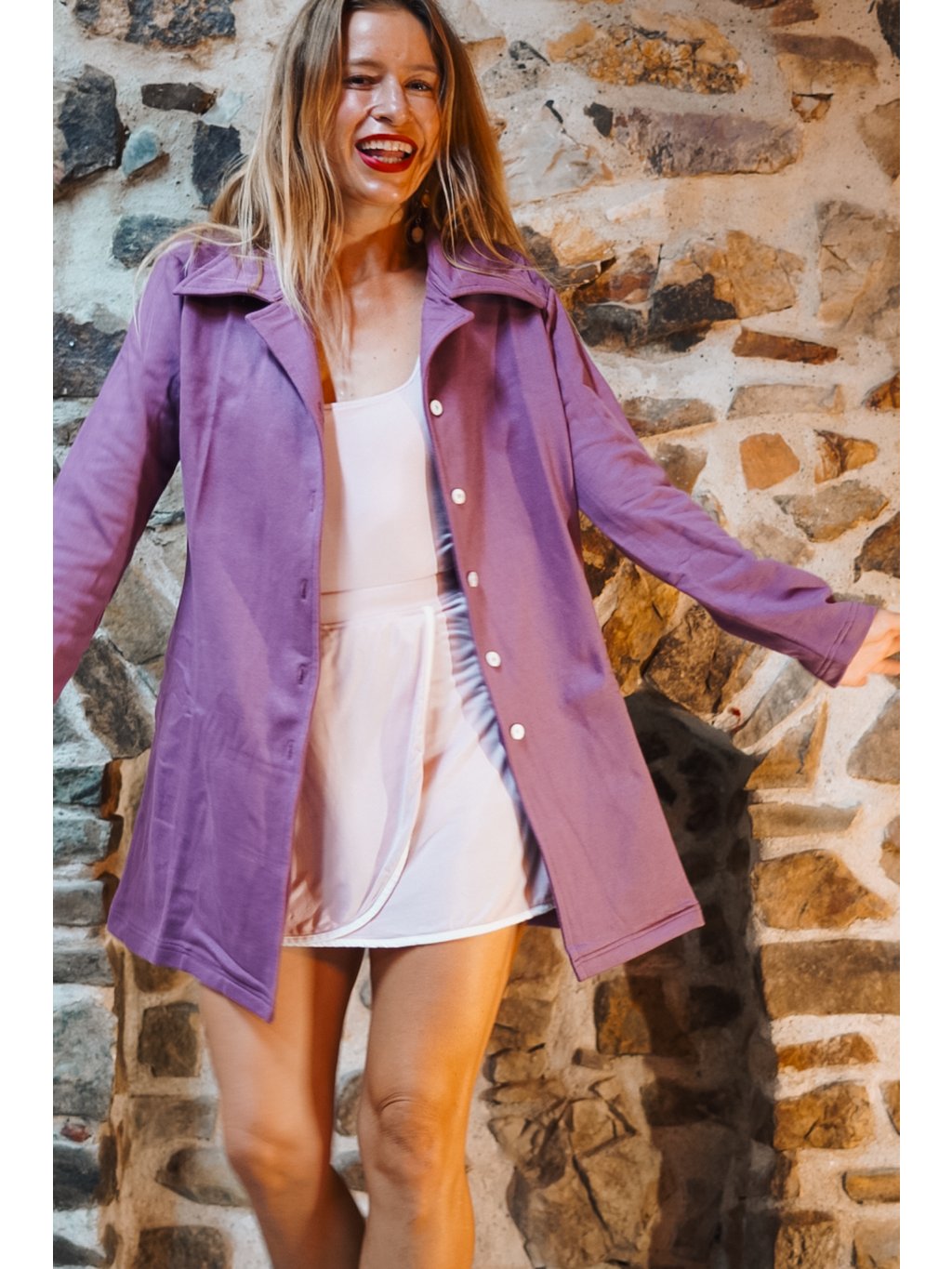Náš bavlnáček měkce fialový, šeříkový je přenádherný. Ta barva je tak hladící, uklidňující a vyživující. Vem si kabátek na jógovou lekci nebo na procházku a uvidíš, jak na Tebe bude působit zachumlaně a elegantně zároveň. Je to náš absolutní miláček!