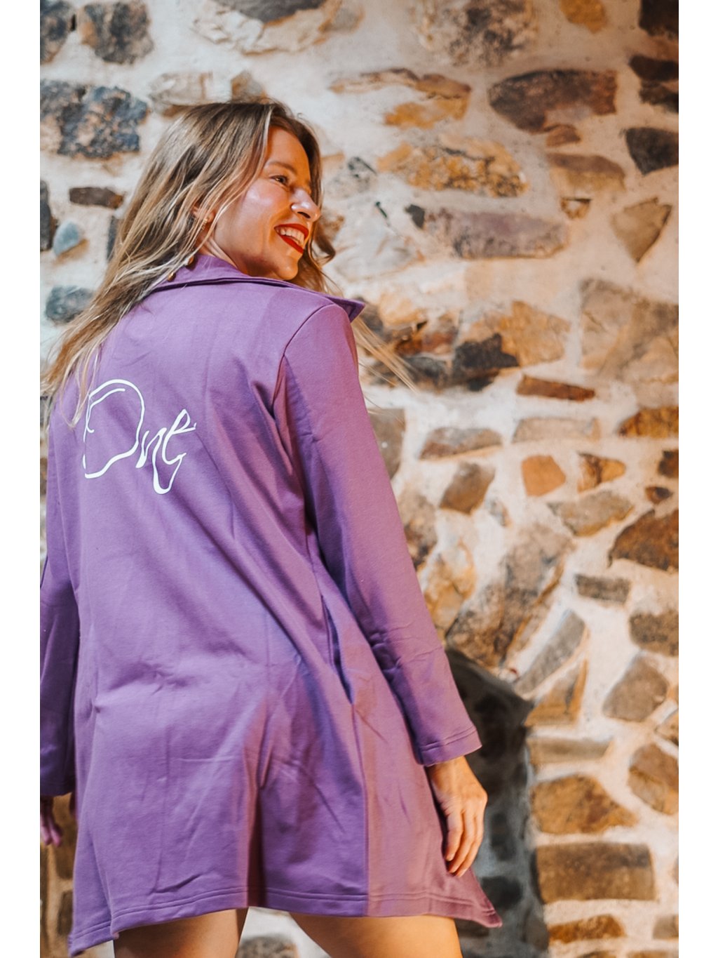 Bavlněný kabátek světle purpurový s potiskem ONE