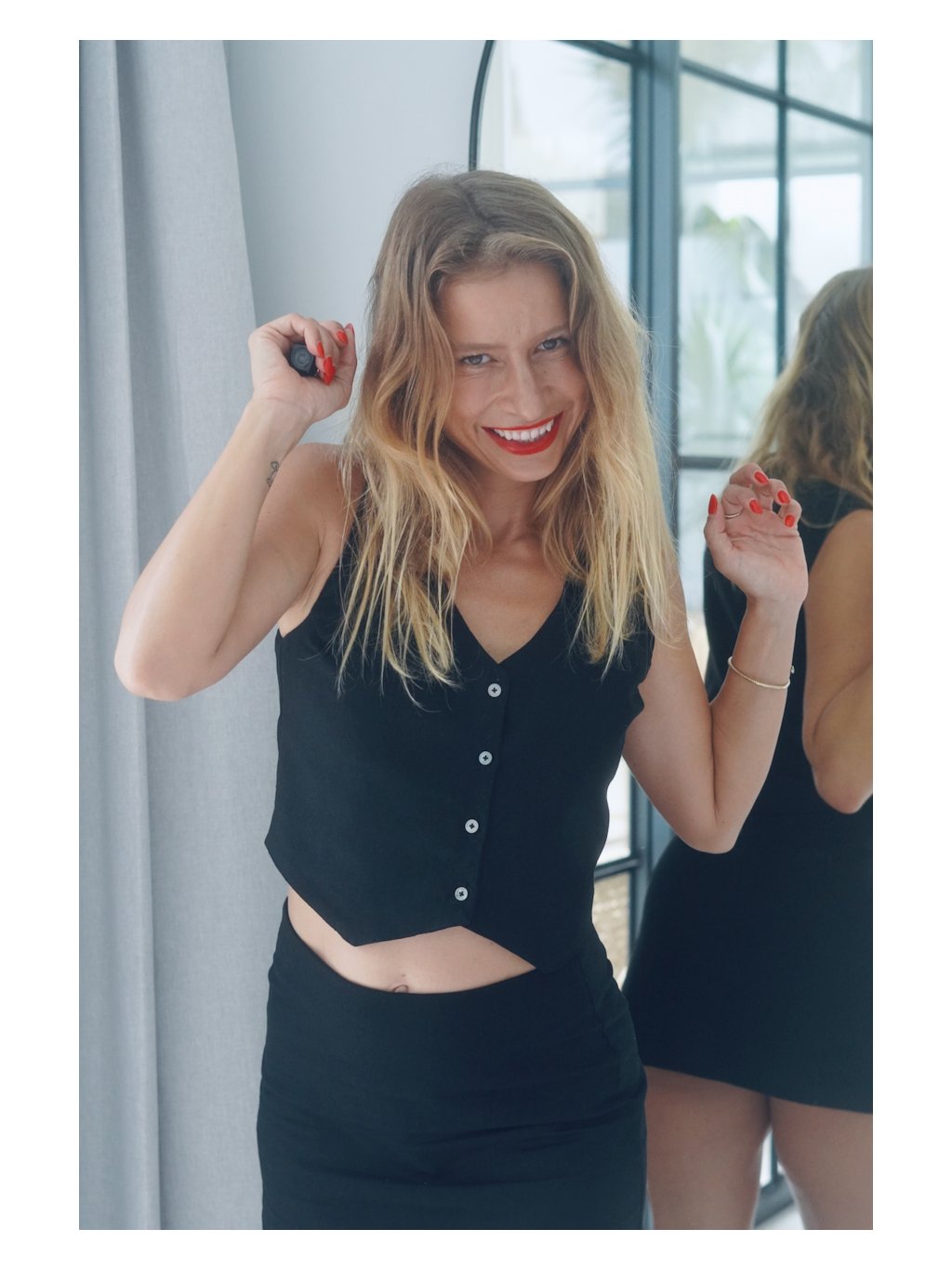 S ní si nezahrávej. Je milá a hodná, ale také umí vyjádřit, co chce a co nechce. Černý lněný top s bavlnou pro Business Dragon Ladies.