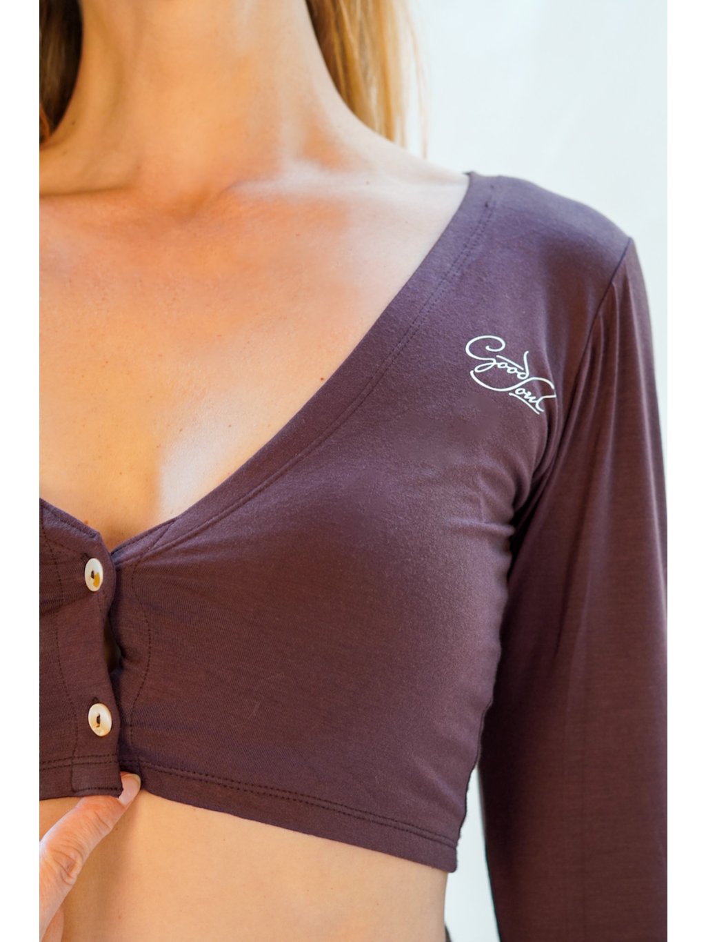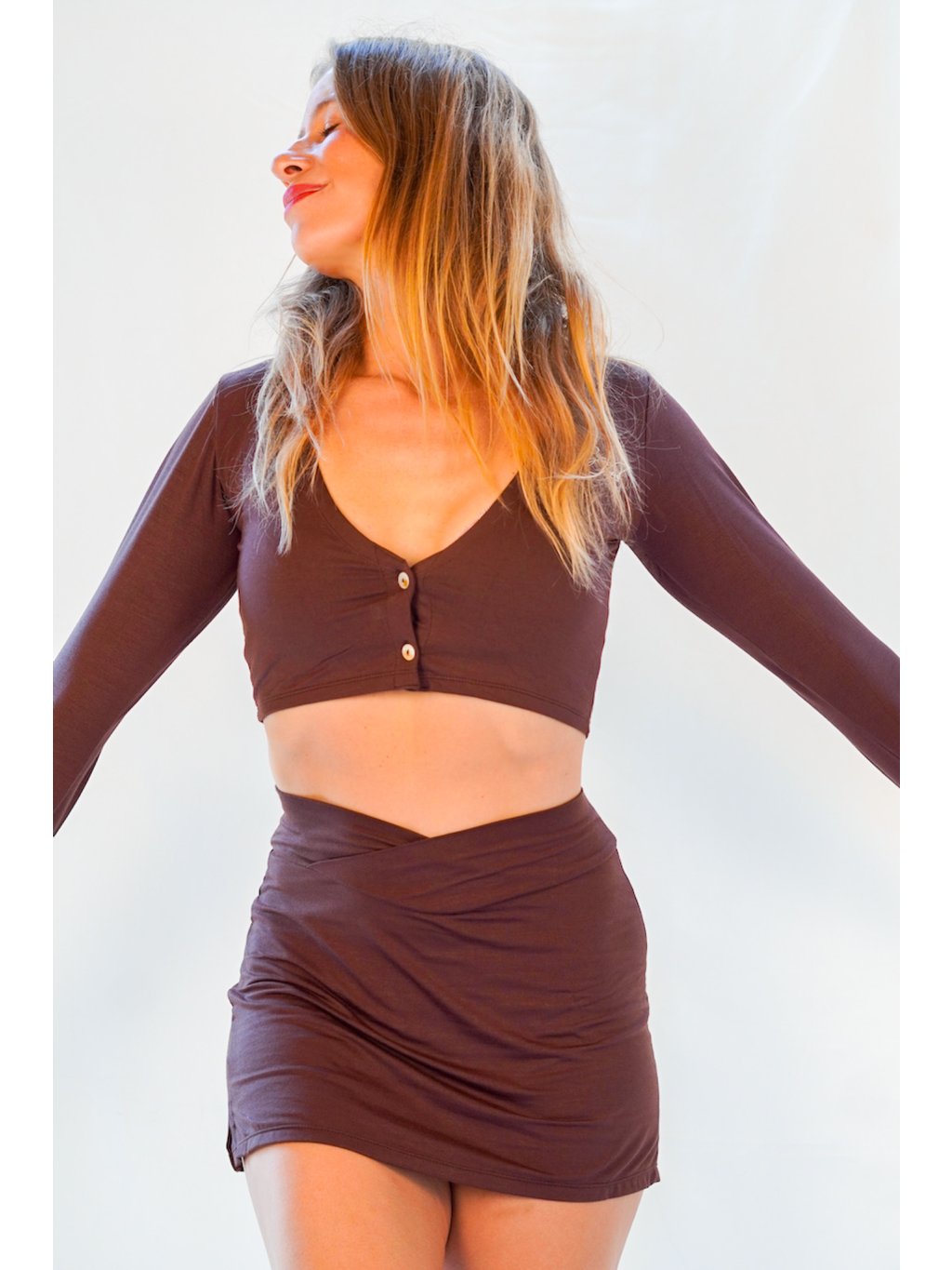 Crop top na knoflíčky viskóza, čokoláda