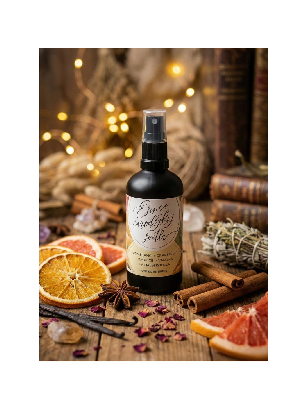100% přírodní esenciální oleje (pomeranč, grapefruit, skořice, vanilka + jemná tajná směs).