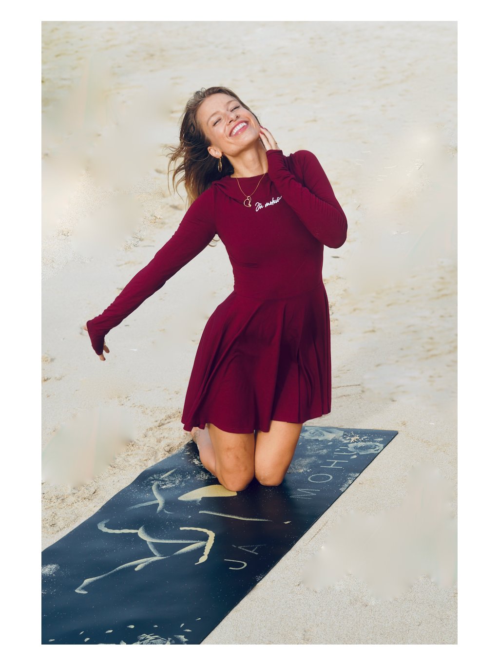 Vysokovibrační jógová podložka JÁ MOHU. Řekni si v duchu: Já mohu. Jak se to cítí? Navrhli jsme tento design tak, aby reflektoval nejvyšší vyladění odvahy a uvolnění a také sebedůvěry. Je absolutně protiskluzová, aby ses na svou podložku mohla spolehnout a opřít se o ni.