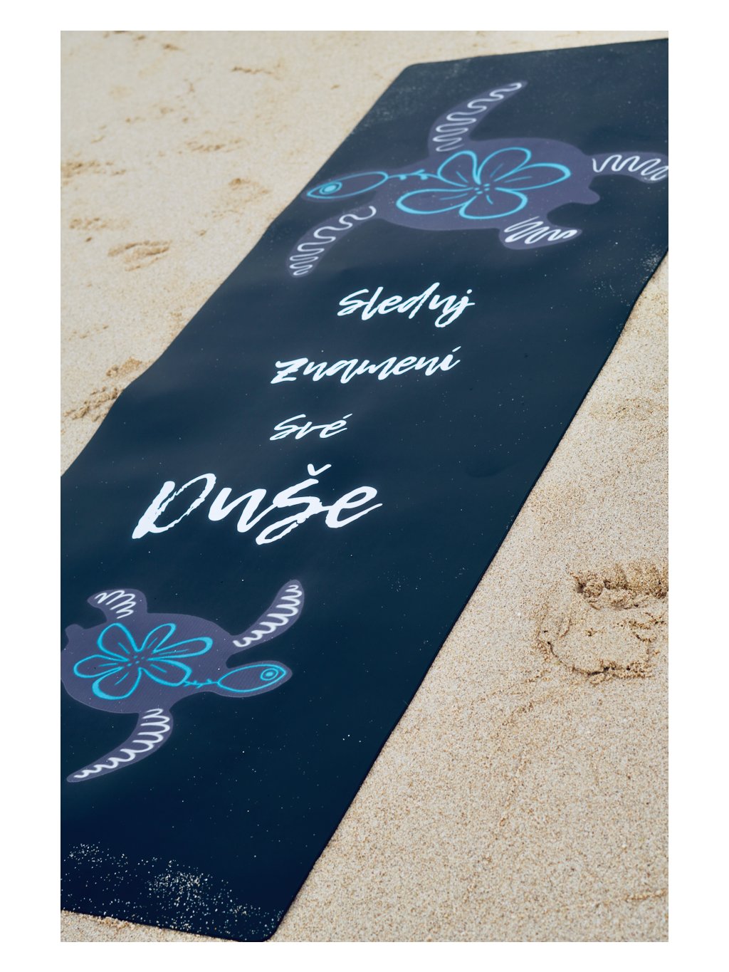 Vysokovibrační jógová podložka SLEDUJ ZNAMENÍ s kouzelnými želvičkami pro podporu na cestě odvahy. Chtěli jsme v Tobě podpořit důvěru v neviditelné. V onen šepot, který Tě volá, abys šla za svými dětskými sny. Její design reflektuje nejvyšší vyladění komunikace s neviditelným. Je absolutně protiskluzová, aby ses na svou podložku mohla spolehnout a opřít se o ni.