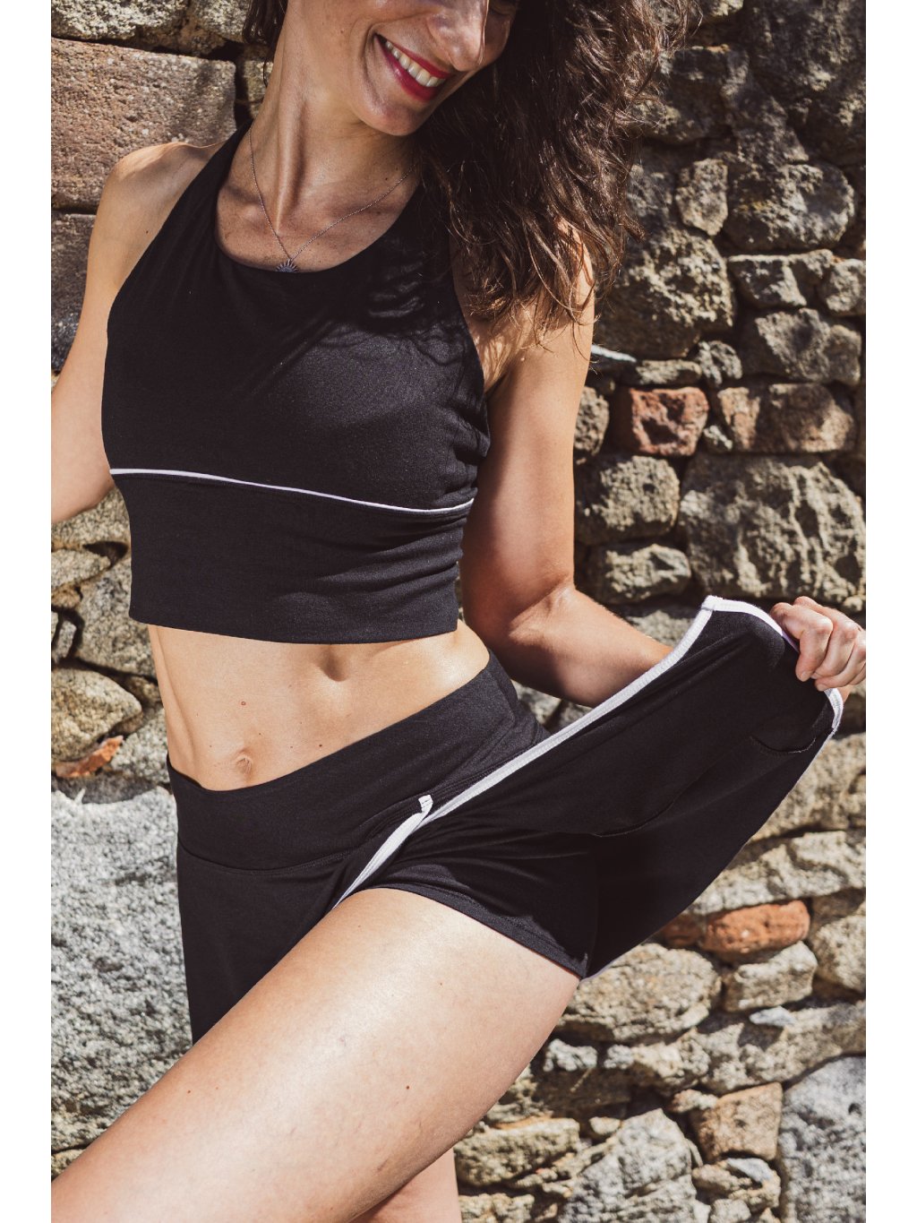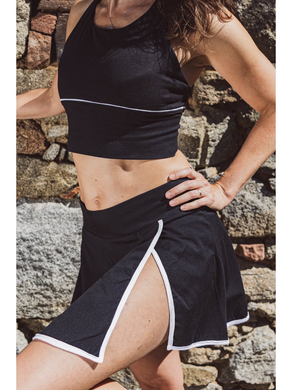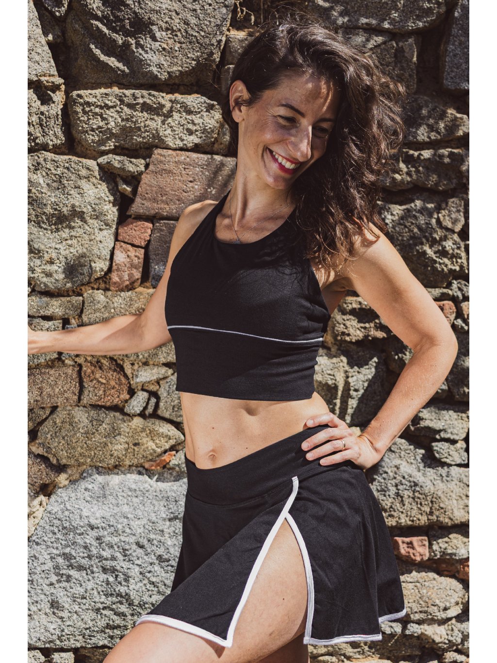 Tato černá bambusová sukně je navržena s Láskou pro všechny, kdo hledají spojení elegance a funkčnosti. Díky bambusovému materiálu je velice jemná na dotek, prodyšná a šetrná k pokožce — přesně to, co od oblečení na jógu či sport očekáváš.