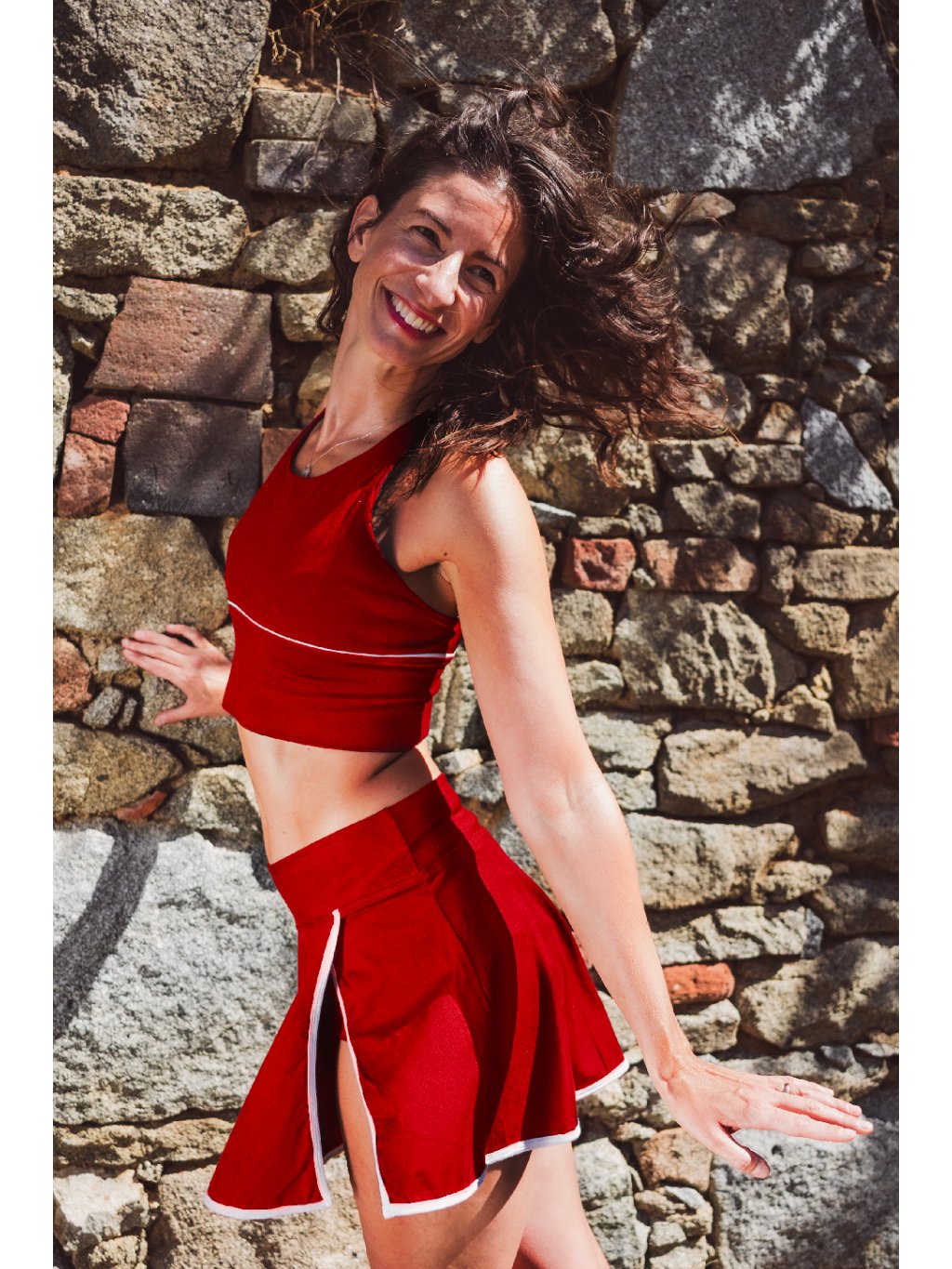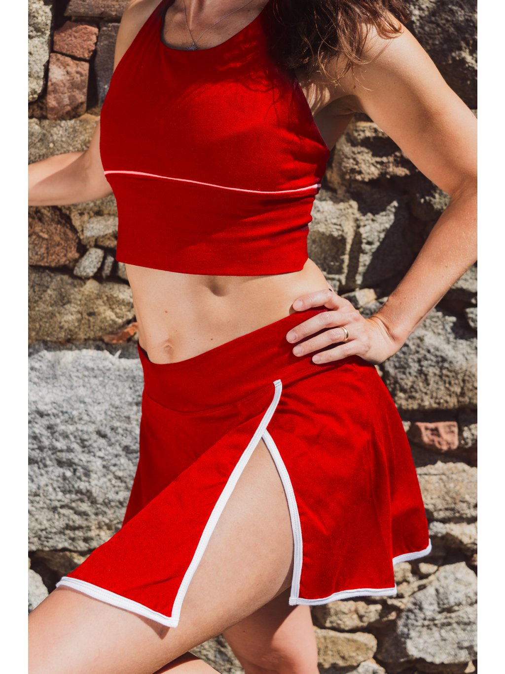 Ah ten rozparek! Viděla jsi, ty kraťásky všité pod sukní, jak vytváří ten wow efekt samotného rozparku? Tato sukénka je taaaak jemná na dotek a je šetrná k pokožce — přesně to, co od oblečení na jógu či sport očekáváš.