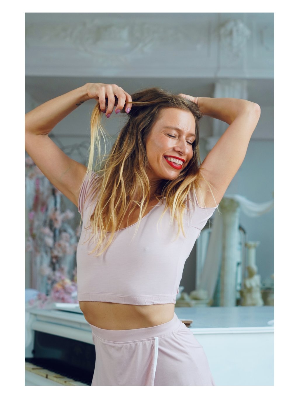 Říká se tomu "crop top" nebo-li ustřižený vrchní díl a ano, trošku jsme mu zkrátili drápky. K našem jógovým sukním nebo k meditačním kalhotům je tento top NAPROSTO DOKONALÝ. Odhalí, ale neukáže. Je lehký, svěží a nádherný.
