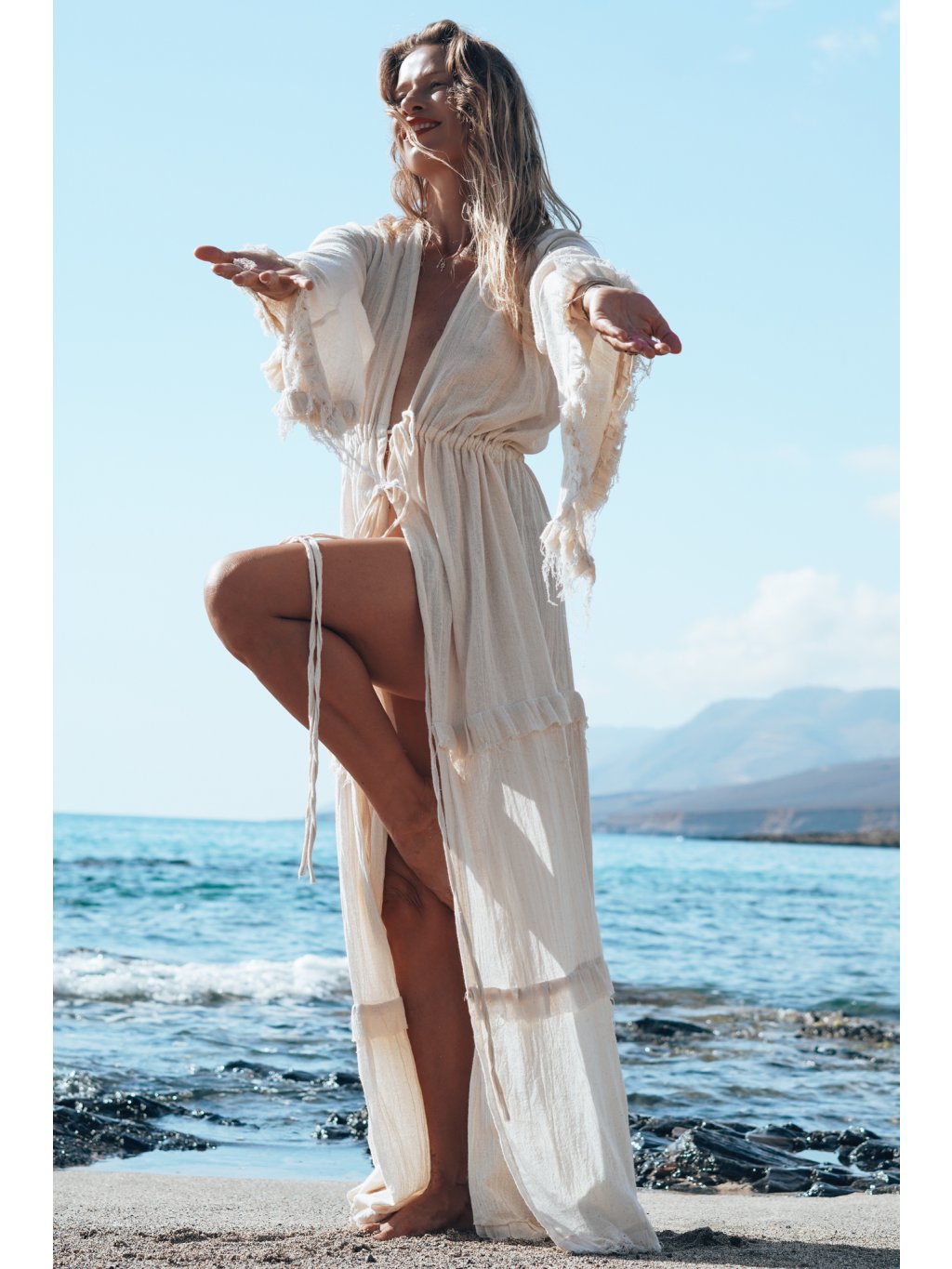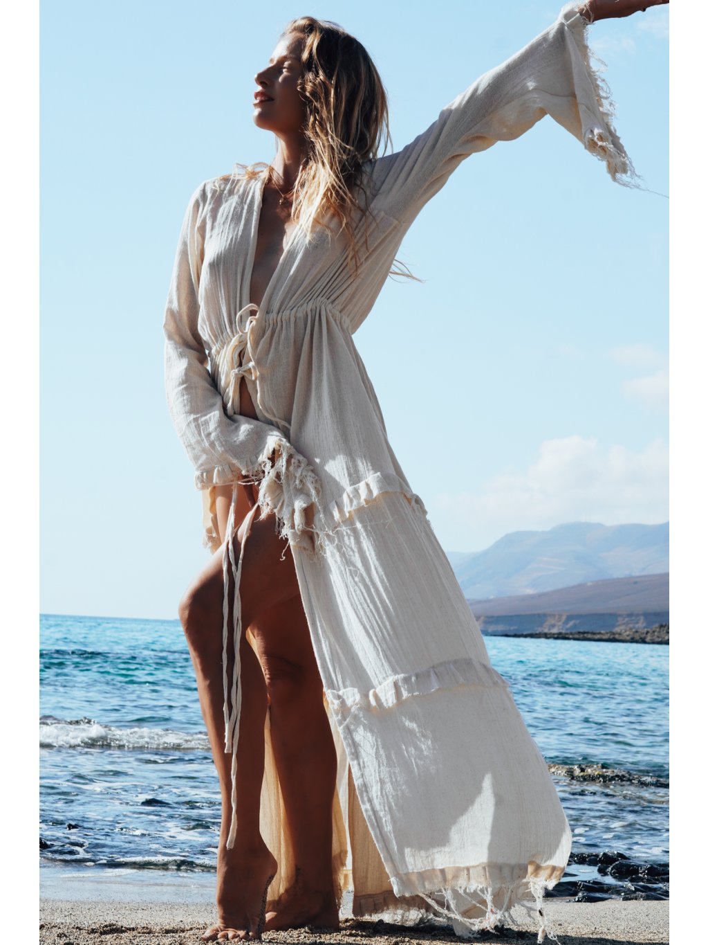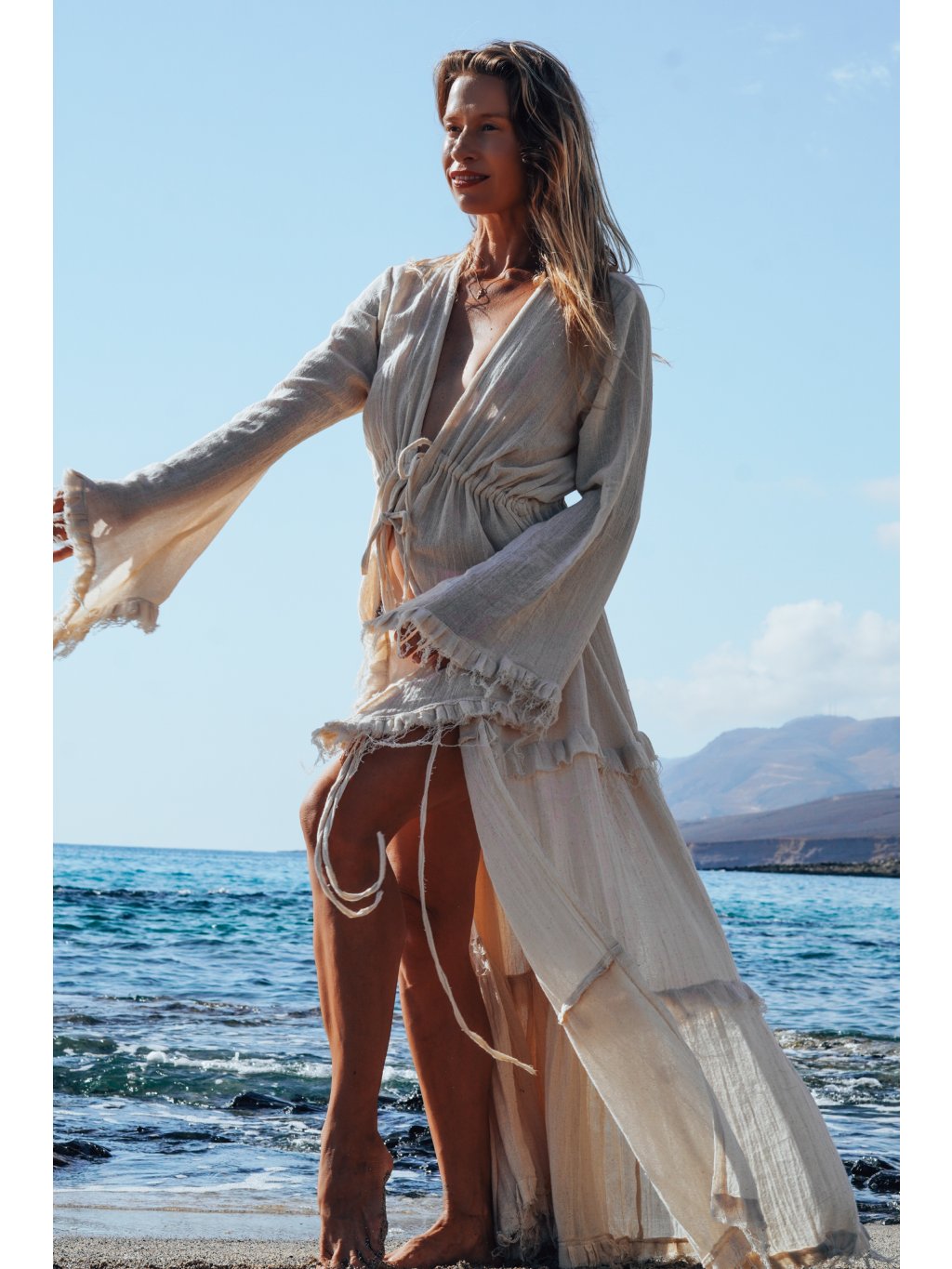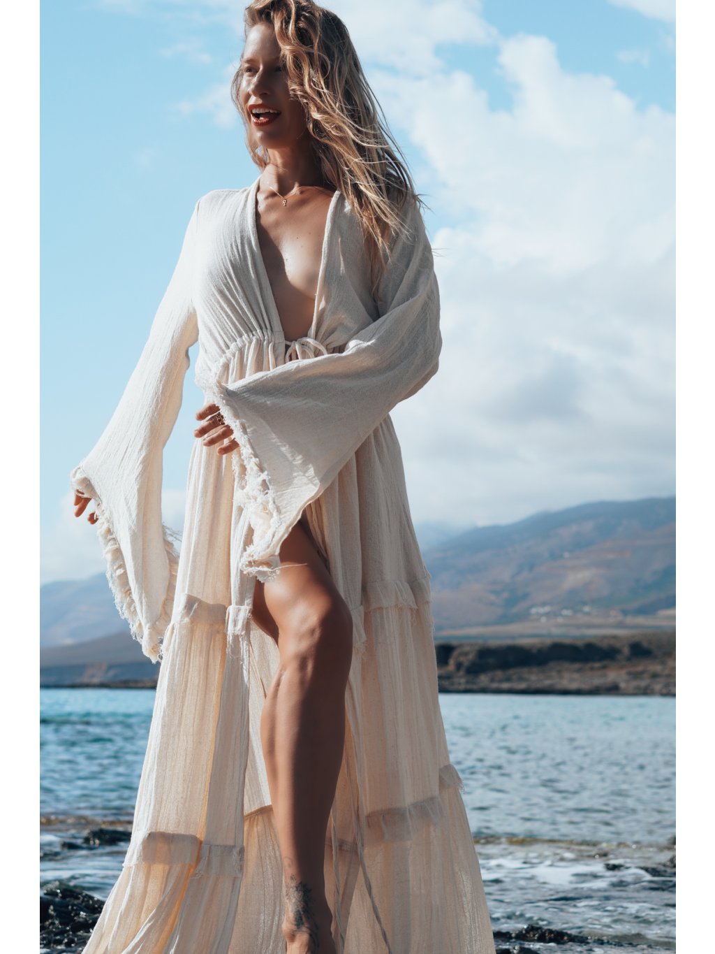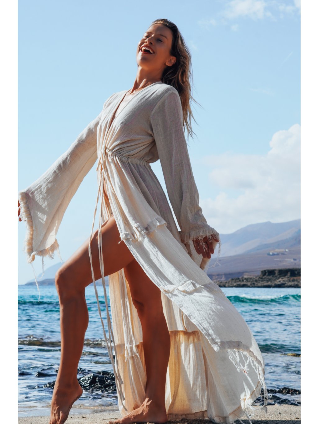 Ta žena šla pouští úplně sama, neměla strach, to ne, ale cítila vzrušení a klid zároveň. Pouštní vánek ji dodával vláhu a odhodlání. Věděla, co ji volá a rozhodla se konečně za tím jít. Už ji nic nepoutalo. Ani minulost, ani strach z budoucnosti. Byla konečně svobodná. A měla na sobě toto kouzelné ROUCHO z RUSTIKÁLNÍ bavlny.