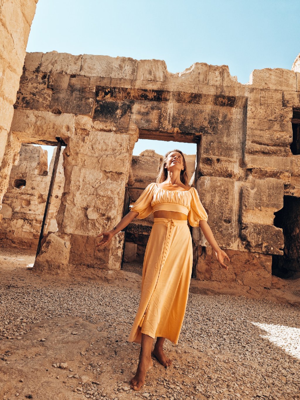 Meruňková záře jí dodávala pocit, že je zamilovaná do života a že dokáže cokoliv, protože jí život stojí za zády. Tato vzdušná sukně z naší nové kolekce La Elly zachycuje esenci balijského léta v každém záhybu.