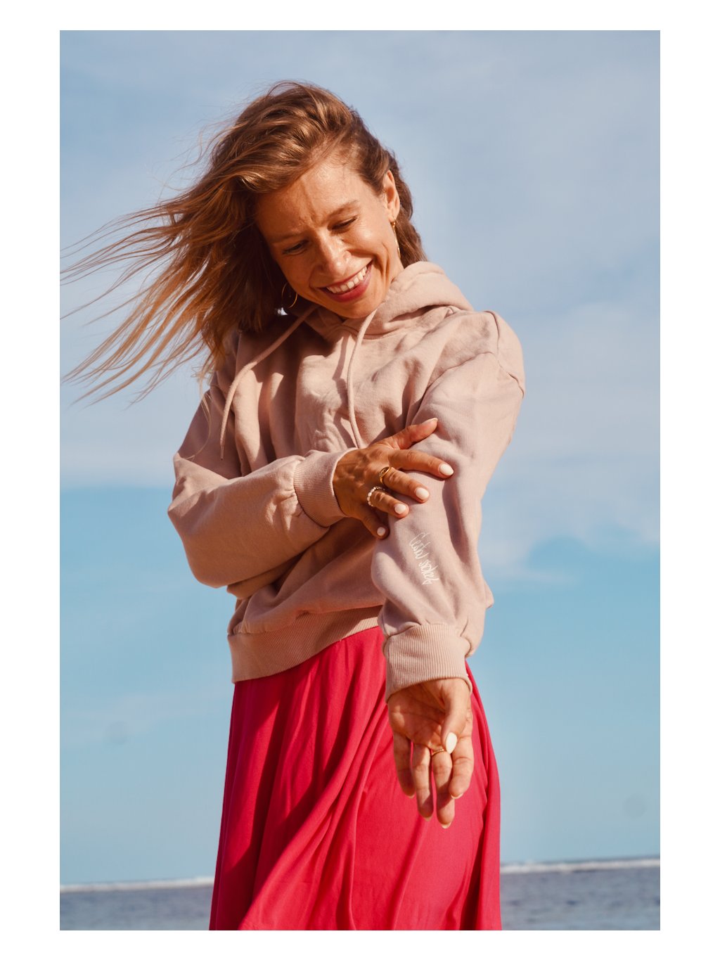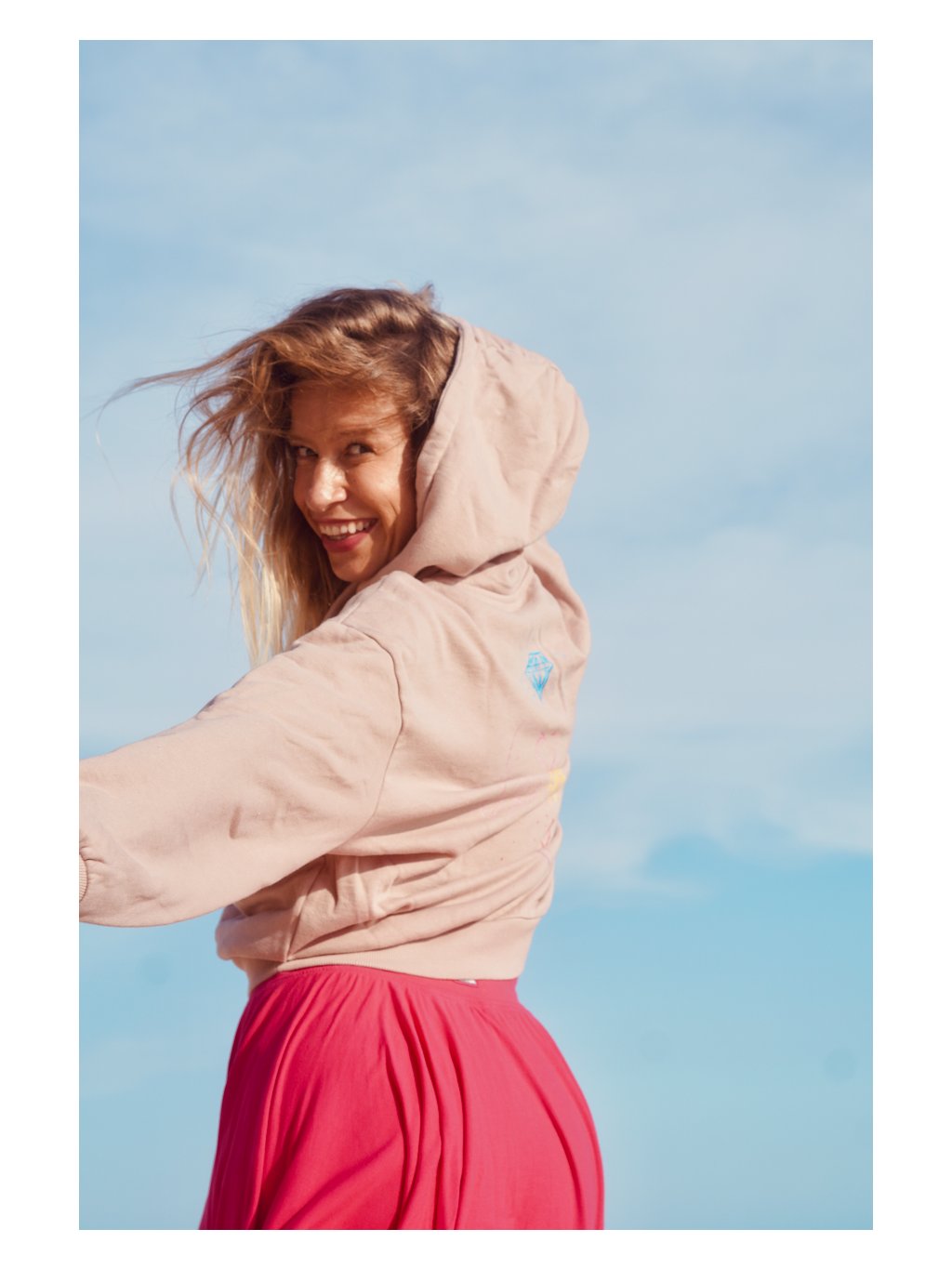 Tato mikina je našlapaná radostnou energií. Když jsme ji tvořili, byly jsme u toho šťastné a nemohly jsme se dočkat, až se mikina zhmotní. A už je tady a je to náš mazel.