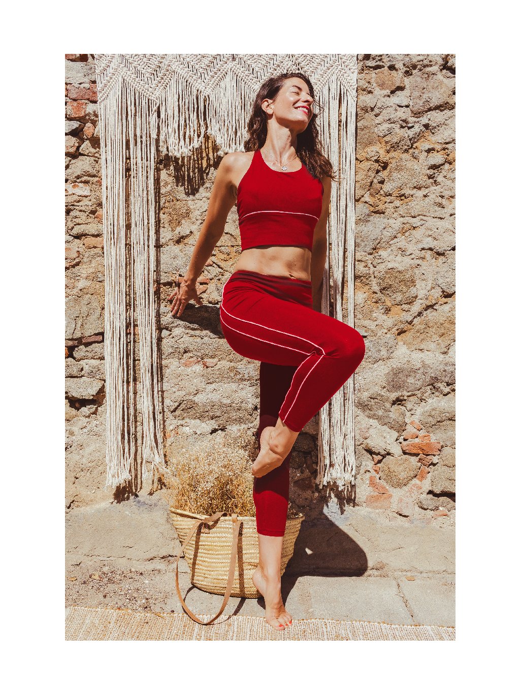 Dámy a pánové, prosíme, zastavte se a naberte doušek energie z této úchvatné červené barvy! A naše legíny jsou samozřejmě úplně dokonalé! To máme ale kombinaci! Testovali jsme je několik měsíců během praxe a jsou naprosto aaaaaaaahhhhh! Sedí. Vytváří postavu přesýpacích hodin (to chceš). A jsou 100% přírodní.