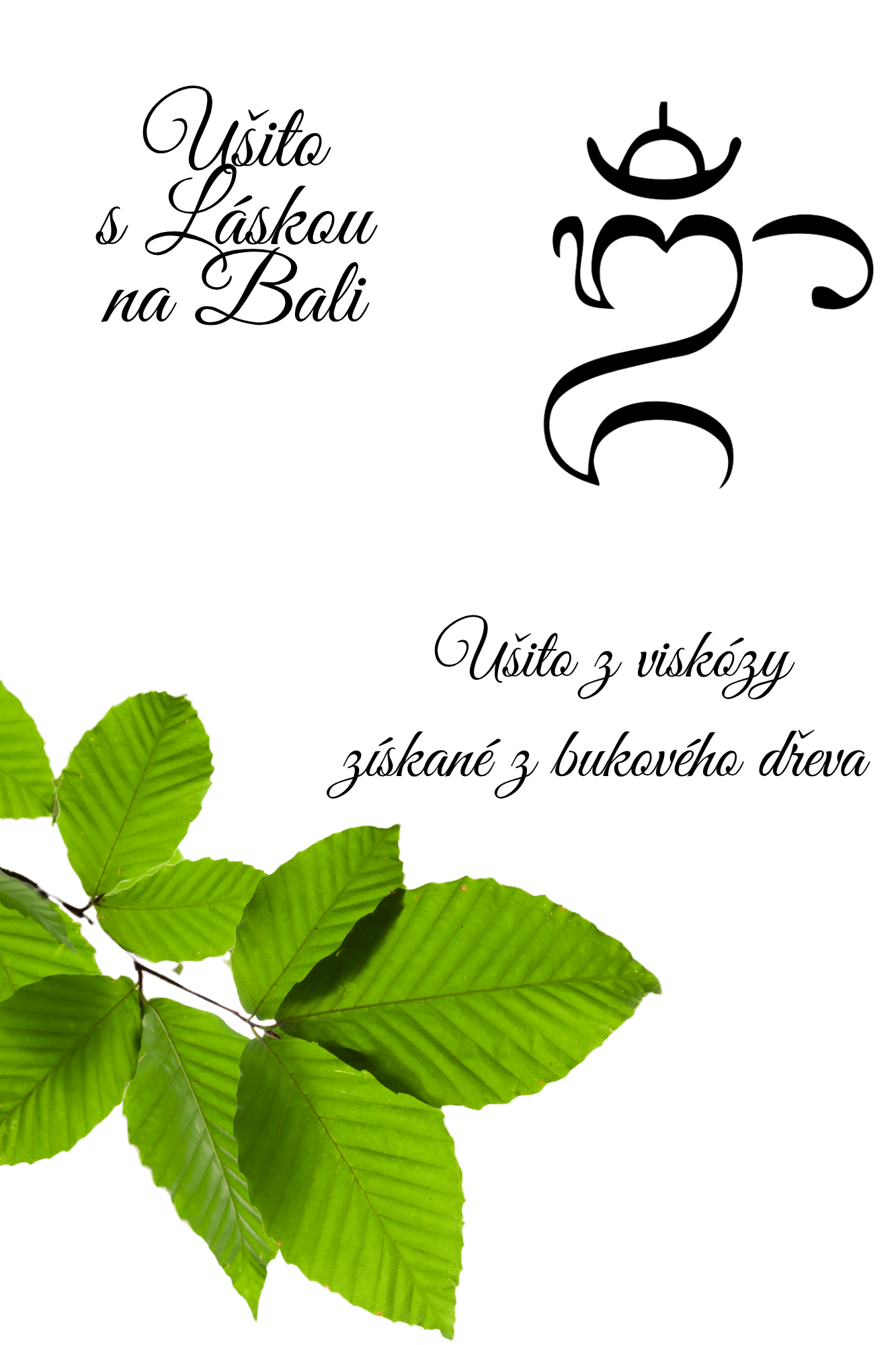 - Materiál: balijská viskóza nebo-li rayon, vyrobena z dřevěné celulózy + 7% elastanu, aby látka dokonale a jemně obepnula Tvé vzácné tělo.