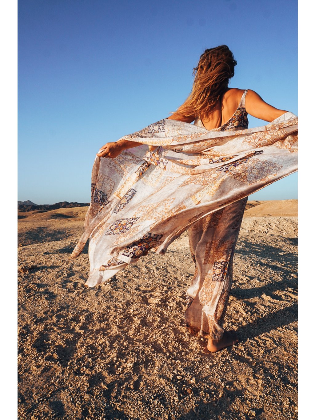 Lehoučké jako dech a měkké jako písek pouště – tyto kalhoty se pohybují s Tebou a nechávají tělo volně dýchat. V odstínech měsíční modři, zlatého písku a karamelové hnědi rozzáří modré i hnědé oči. Jsou splývavé, vzdušné a přirozeně elegantní, ideální pro klidné dny i smyslné večery. Kalhoty, které nesou esenci svobody, krásy a ženského klidu.