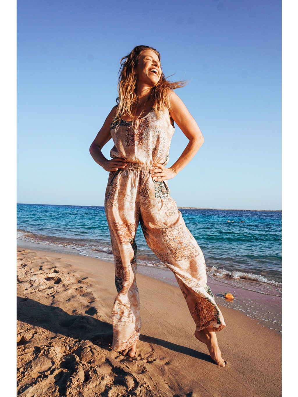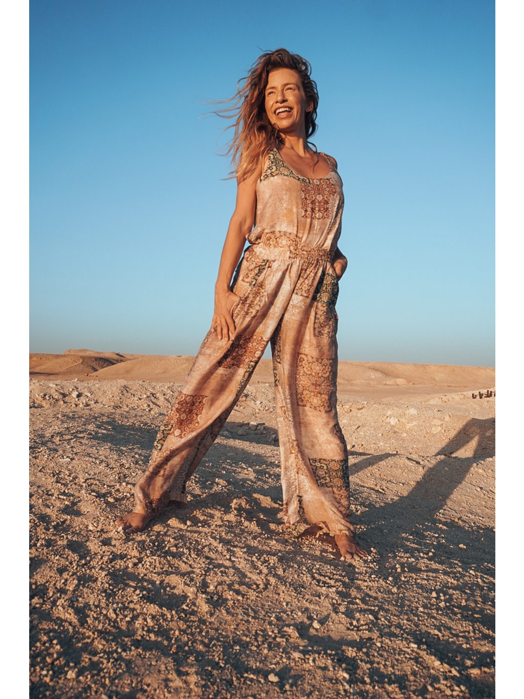 Z jemného tencelu (lyocellu) vznikly kalhoty, které se pohybují jako paprsek světla. Lehoučké, splývavé a hebké na dotek – dokonale ladí s naším kaftanem pro zelené a hnědé oči v teplých tónech zlatého písku a medu.