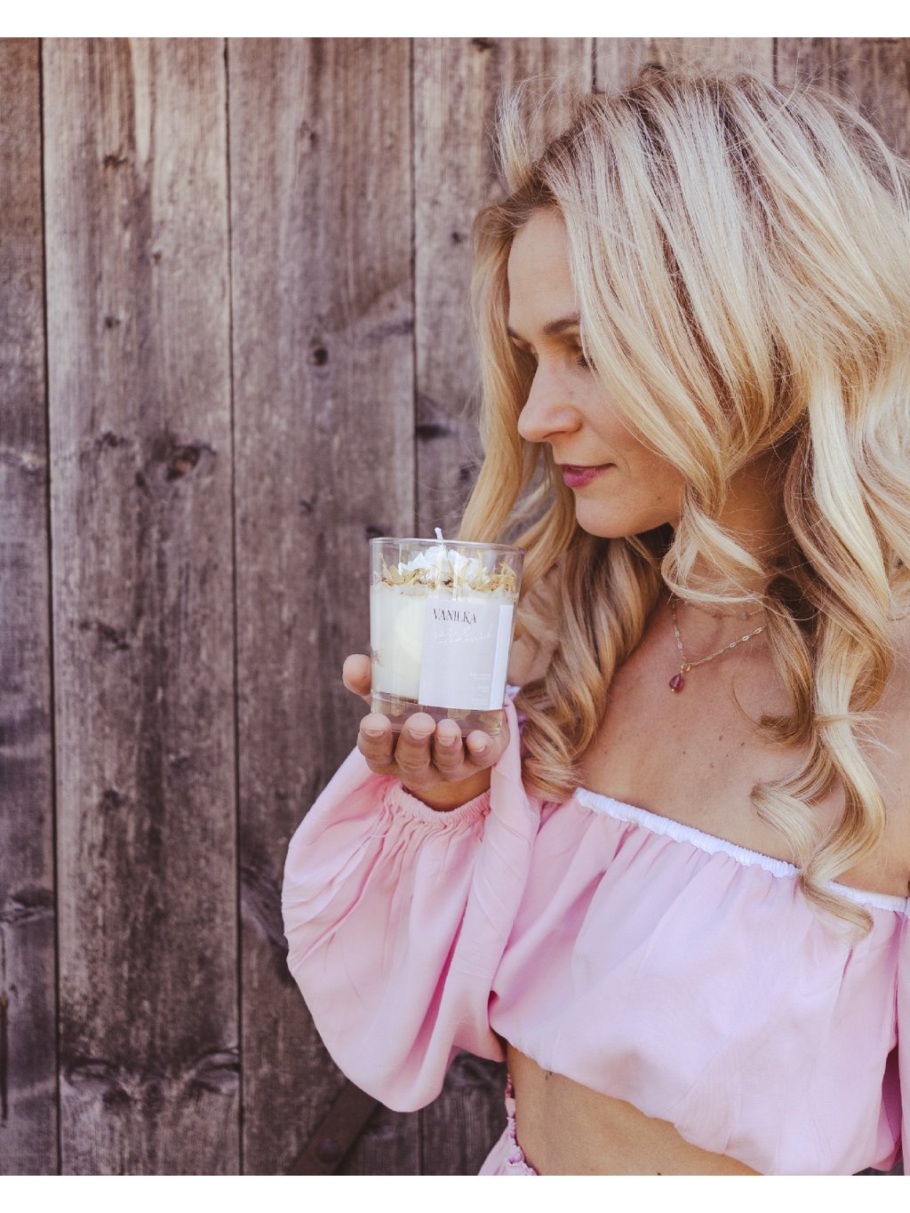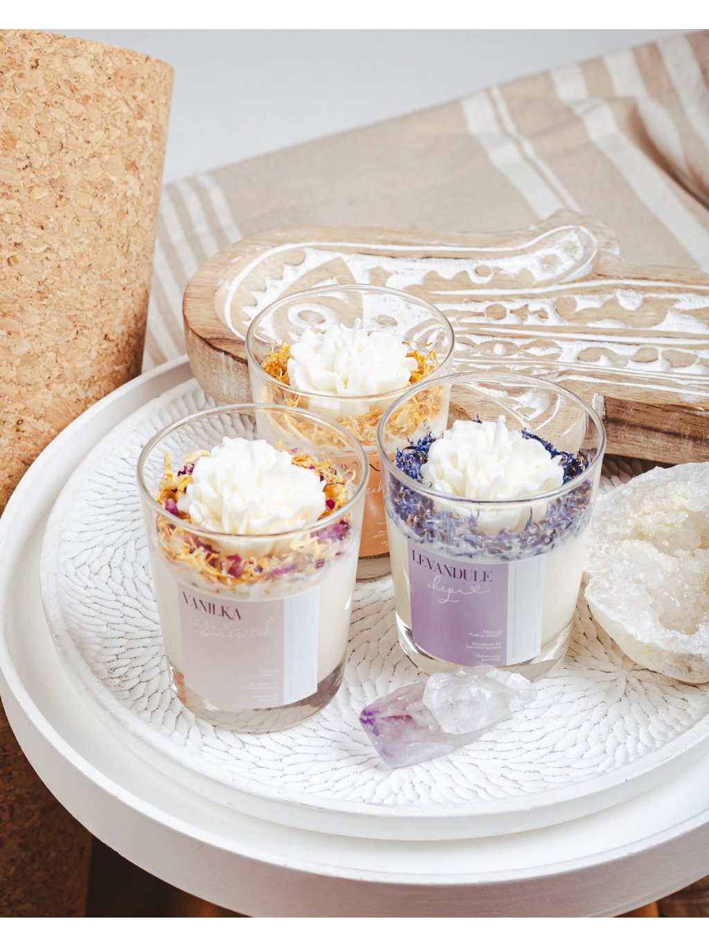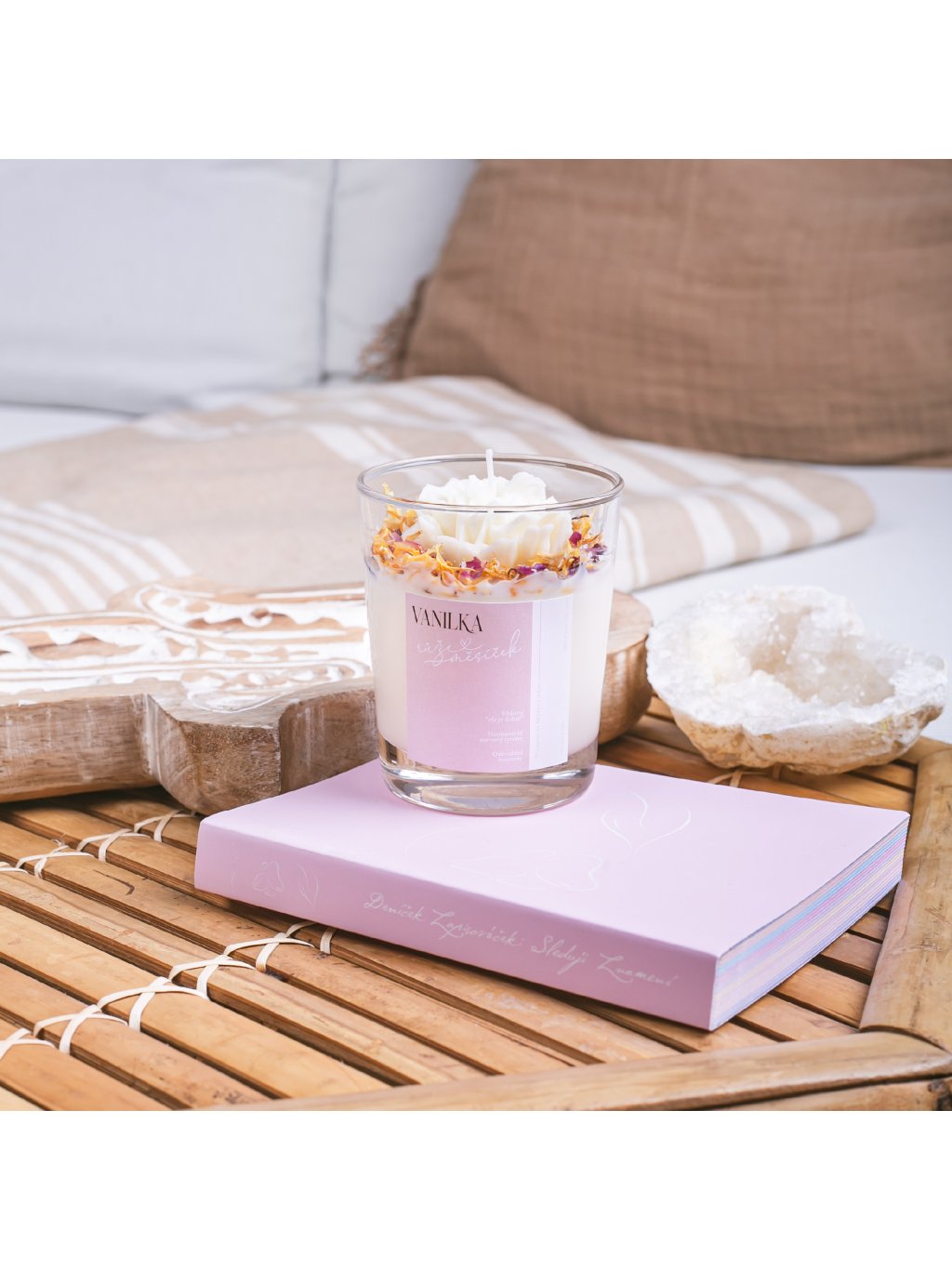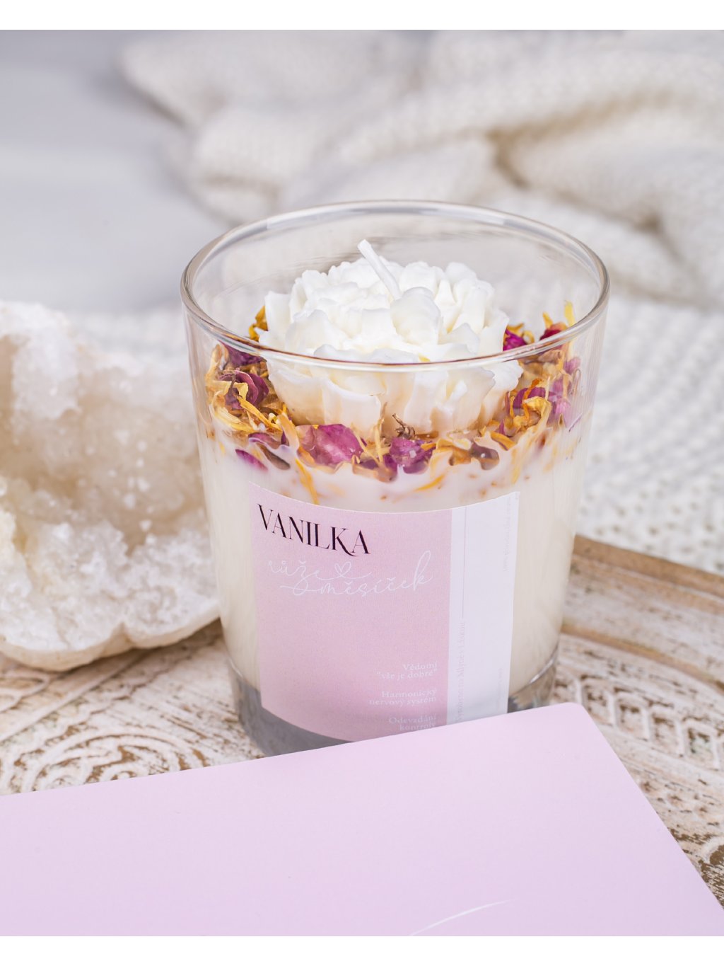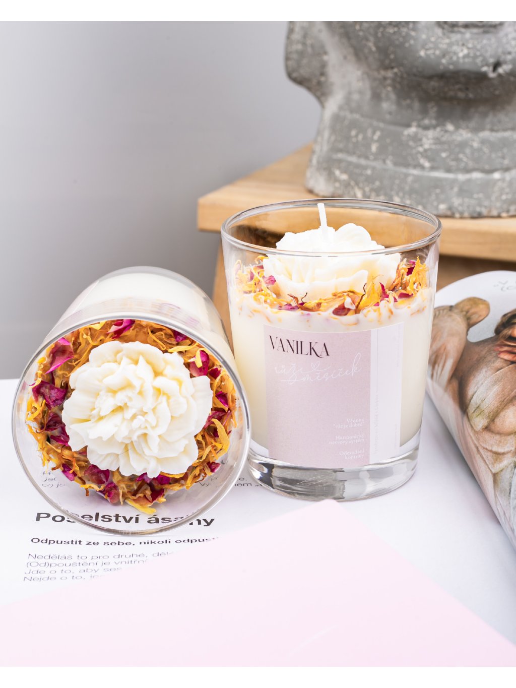 Sójová svíčka VANILKA, růže a měsíček pro hebkost mysli a rozpouštění zamrlinek