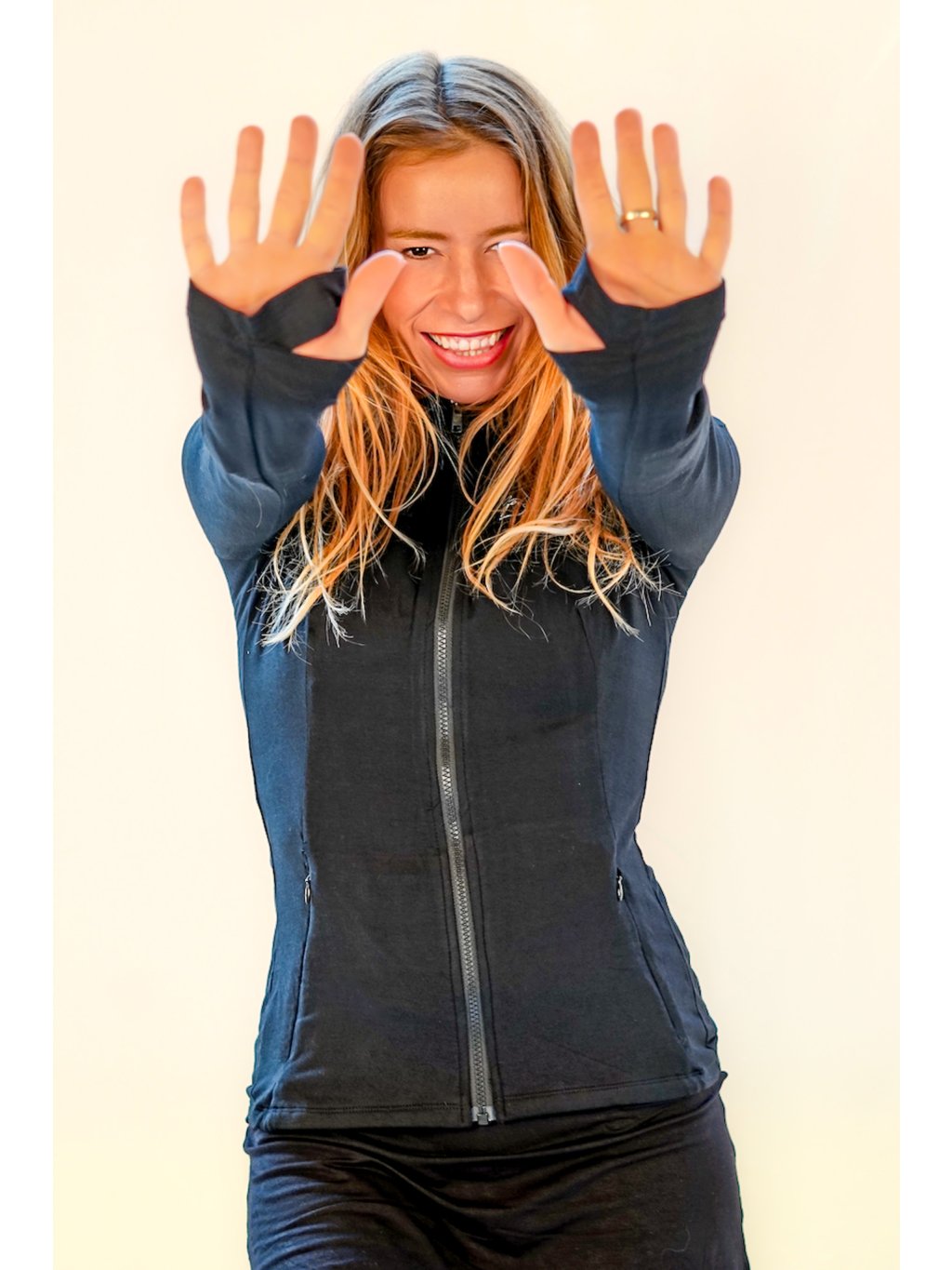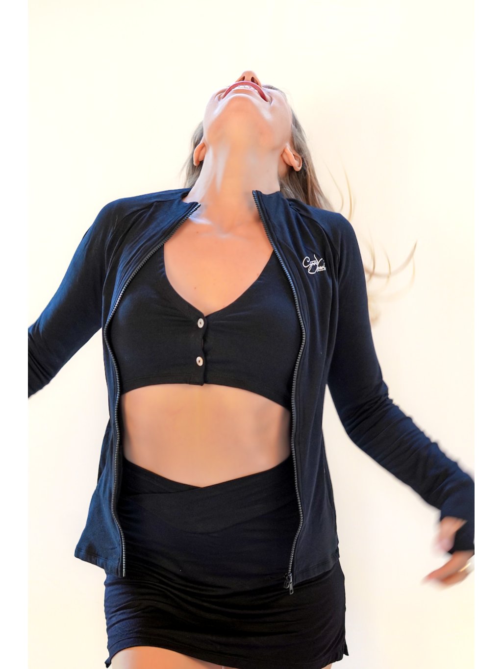 Tak tato bambusová mikina je naše verze "malých černých" - je to něco, co by mělo být součástí každého šatníku. Vytváří nepopsatelný efekt elegance, tajemnosti. Opticky zužuje díky černé barvě, ale také díky šikovně střiženým kapsám, které vytváří efekt užšího pasu.