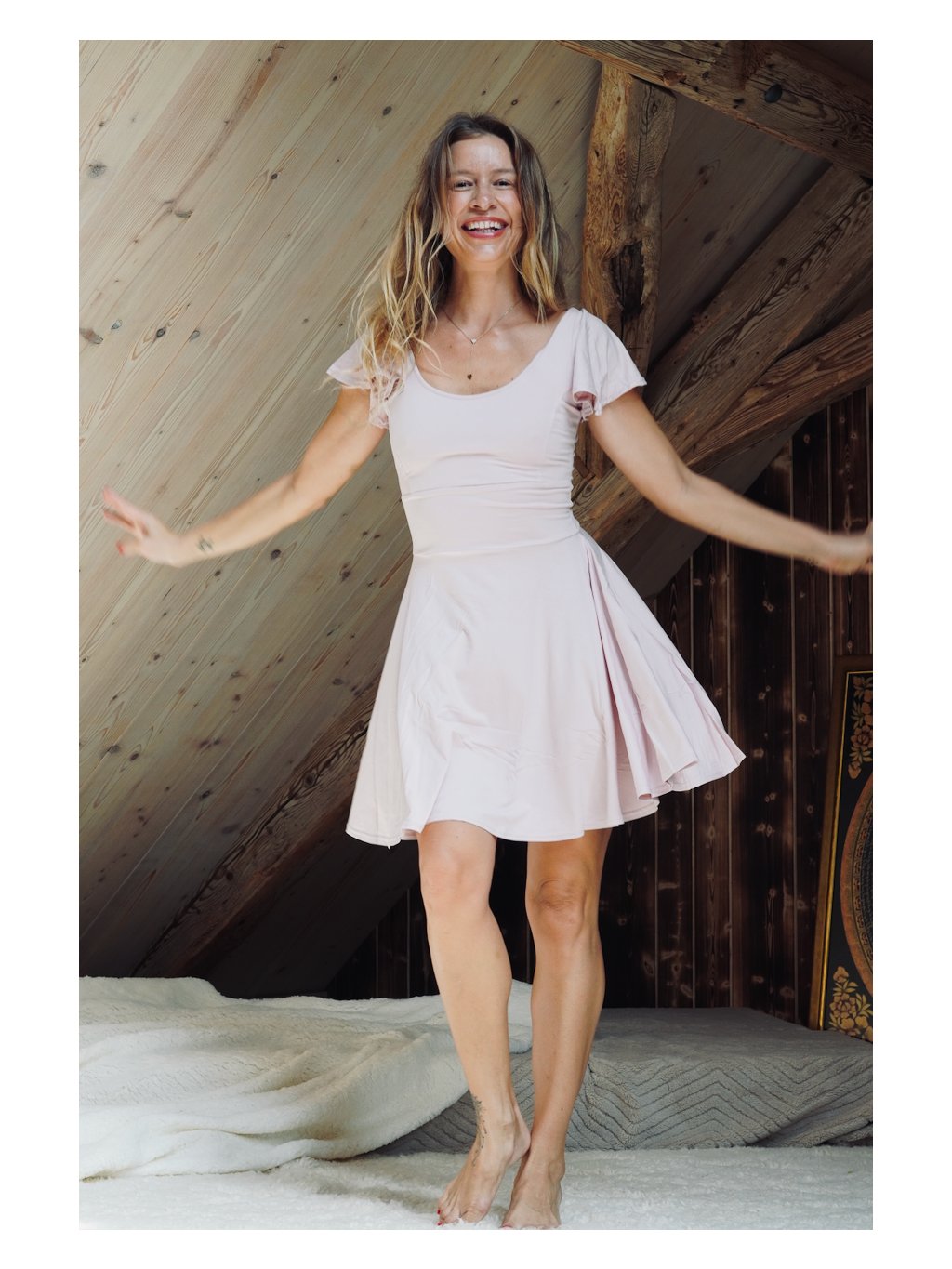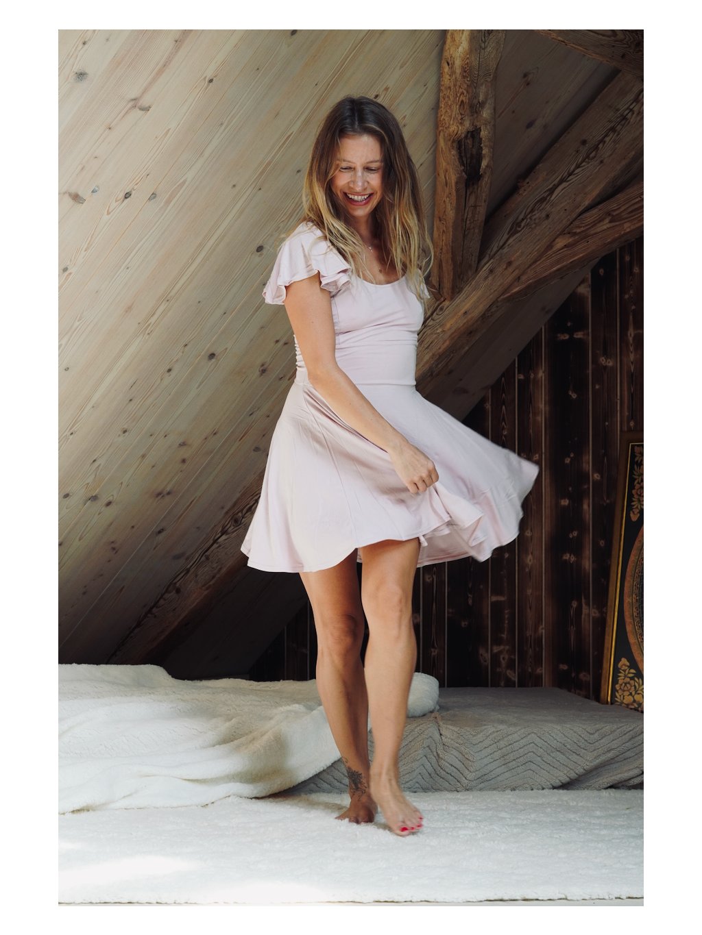 Jako když smícháte jahody s mlékem a potom se do toho obléknete. Není to příliš sladké, je to tak akorát, chutné, decentní a CO JE HLAVNÍ - tato růžová barva a tento střih Vám 100% dodají pocit lehkosti a hravosti. Milujeme to!