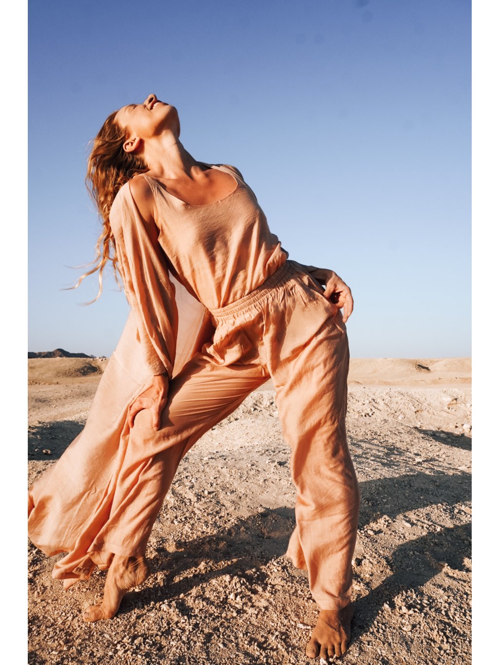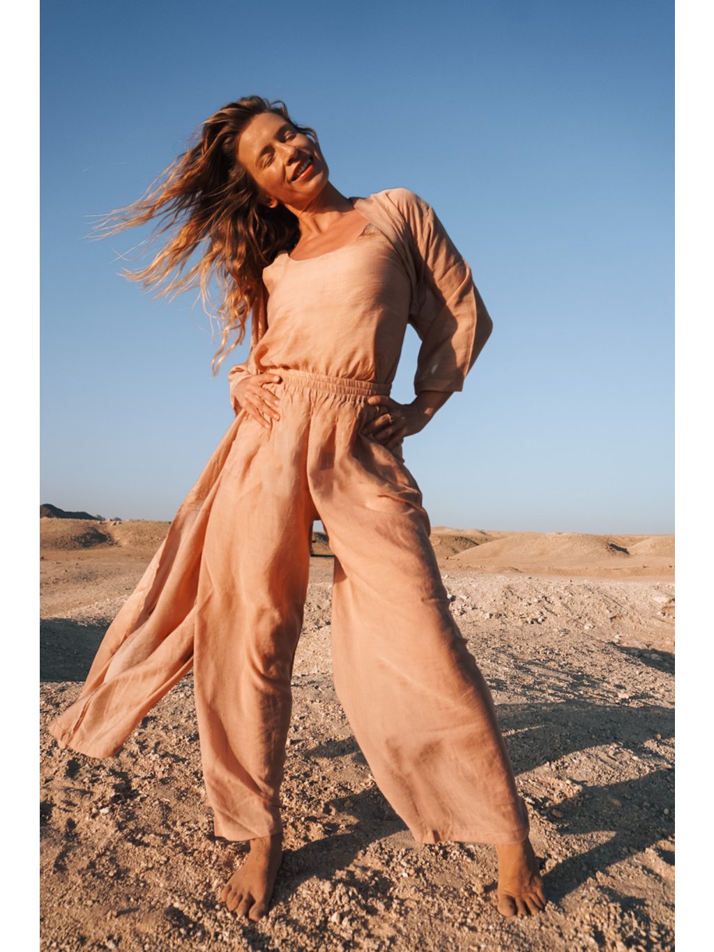 Mají volný střih s přívětivě pružným pasem, který lichotí postavě a přirozeně se přizpůsobí tělu. Ideální k tichým ránům, cestám za sluncem i večerům, kdy chceš prostě být – svobodná, klidná, zářivá.