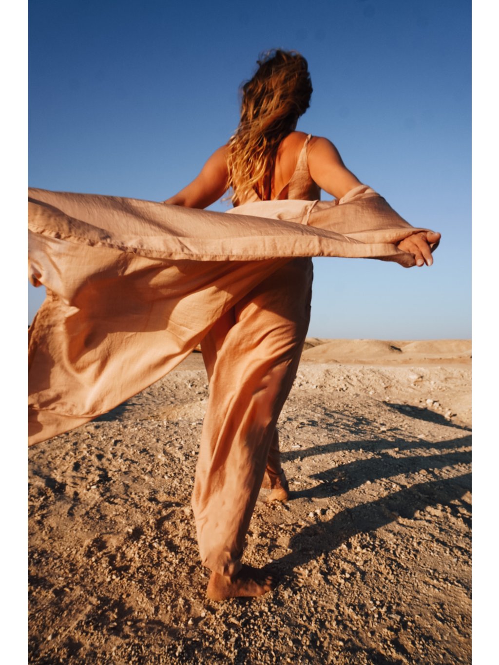 Splývá s tělem jako tekuté světlo, chladí a zároveň hřeje svou přirozenou energií. Jeho krása spočívá v tichosti, v klidu, který z něj vyzařuje. Kaftan pro ženy, které už nepotřebují nic dokazovat – jen zářit tím, kým jsou.